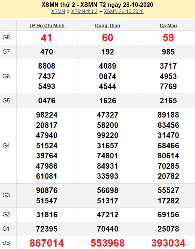 Dự đoán kết quả xổ số miền Nam Thứ hai ngày 02/11/2020 chính xác hôm nay. Kết quả xổ số miền Nam được công bố hàng ngày và luôn thu hút sự chú ý của nhiều người chơi.